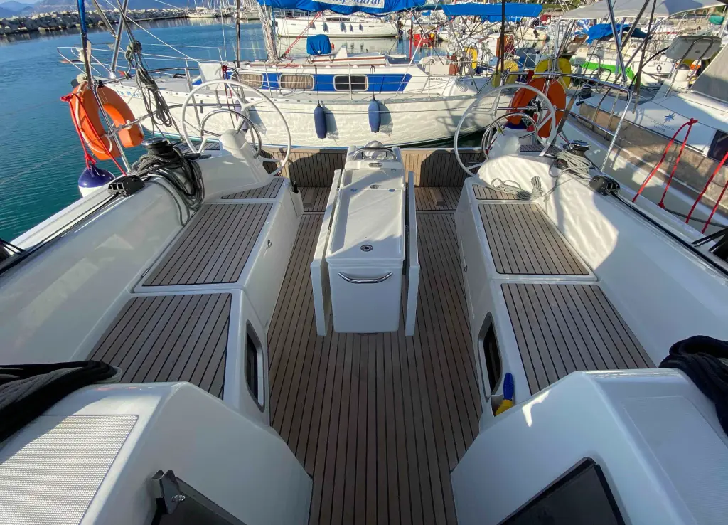 Teak deck cockpit