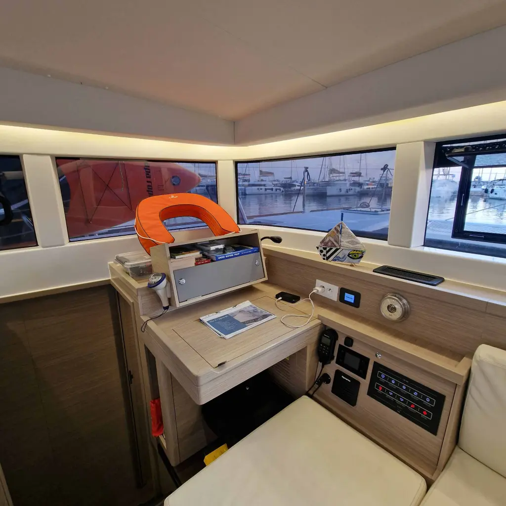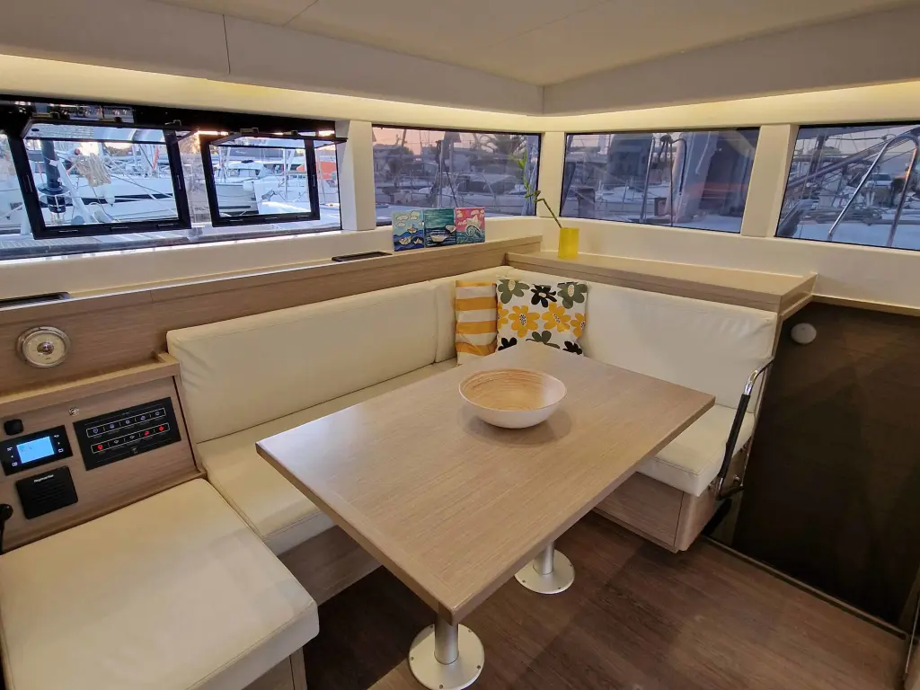 The yacht IOLI II is a model Lagoon 40 manufactured by Lagoon in 2023. It is a perfect choice and is to be rented from Alimos Marina in the area of Greece. IOLI II has 4 cabins and is suitable for up to 10 guests including the crew. Its length is 11.74 metres and the draught - 1.35 metres. IOLI II has the respective license and is operated professionally by the yacht charter company Kiriacoulis.