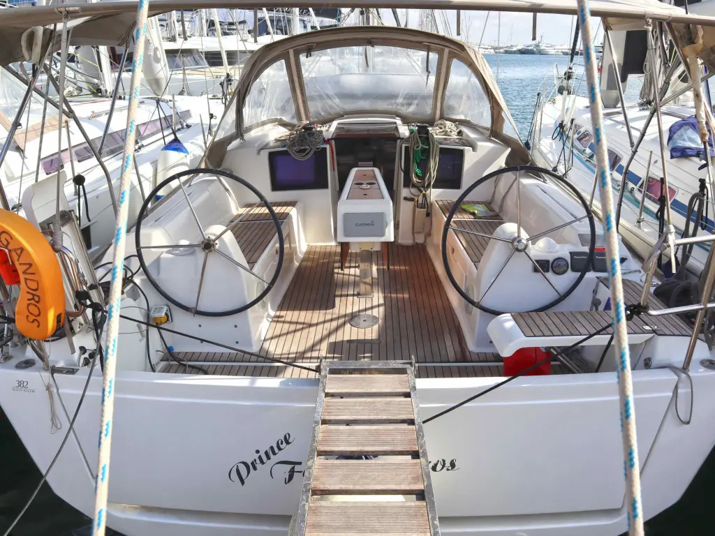 The yacht PRINCE FOLEGANDROS is a model Dufour 382 Grand Large manufactured by Dufour Yachts in 2015. It is a perfect choice and is to be rented from Alimos Marina in the area of Greece. PRINCE FOLEGANDROS has 3 cabins and is suitable for up to 8 guests including the crew. Its length is 11.23 metres and the draught - 1.9 metres. PRINCE FOLEGANDROS has the respective license and is operated professionally by the yacht charter company Y Knot Yachting.