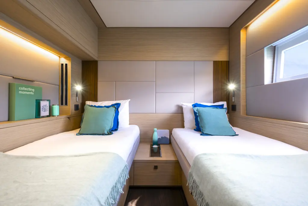 The yacht SAILUXE - Pac-one is a model Lagoon 60 manufactured by Lagoon in 2026. It is a perfect choice and is to be rented from Porto di Castellammare del Golfo in the area of Italy. SAILUXE - Pac-one has 5 cabins and is suitable for up to 10 guests including the crew. Its length is 19.77 metres and the draught - 1.65 metres. SAILUXE - Pac-one has the respective license and is operated professionally by the yacht charter company Spartivento.