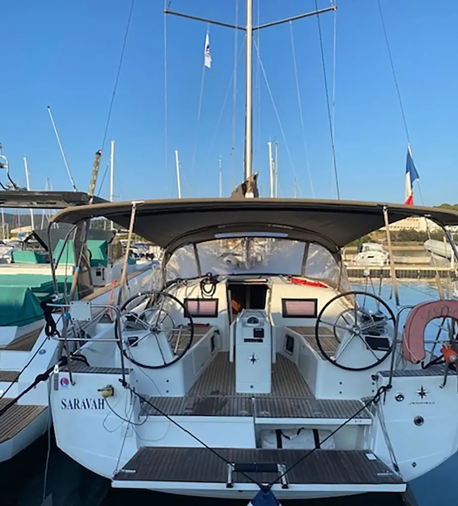 The yacht SARAVAH is a model Sun Odyssey 410 manufactured by Jeanneau in 2020. It is a perfect choice and is to be rented from Port de Bormes-les-Mimosas in the area of France. SARAVAH has 3 cabins and is suitable for up to 8 guests including the crew. Its length is 12.35 metres and the draught - 2.14 metres. SARAVAH has the respective license and is operated professionally by the yacht charter company Y Knot Yachting.