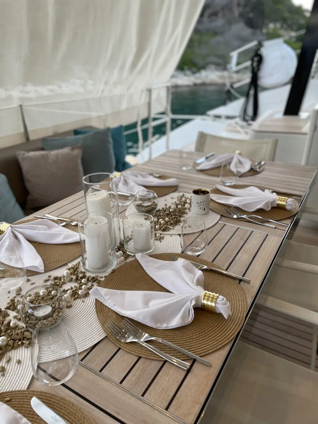 Teak laid seats