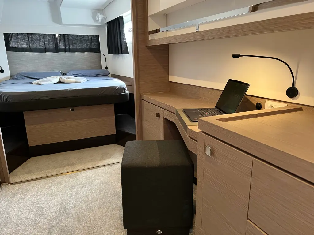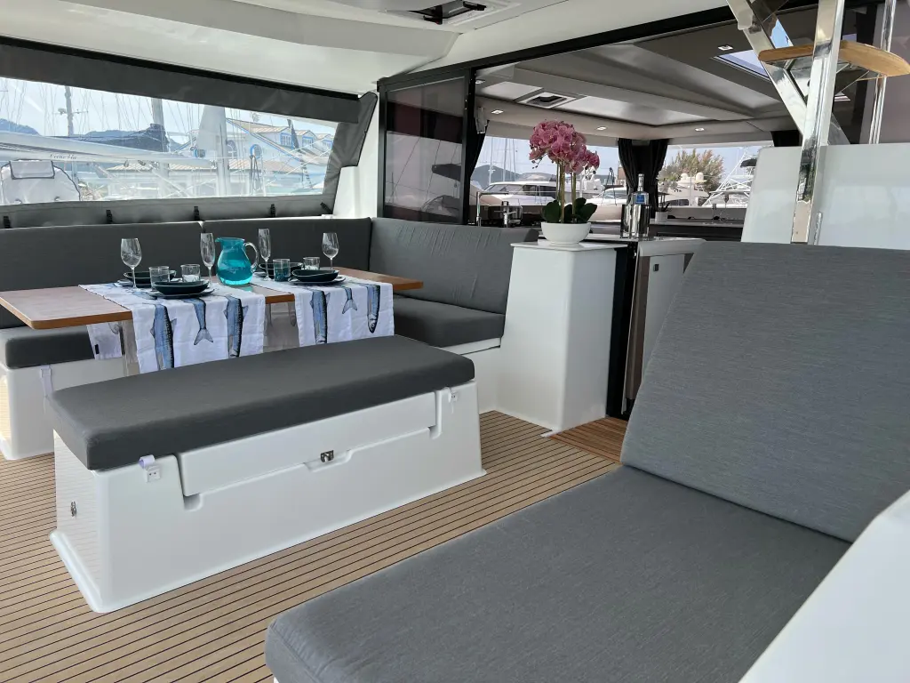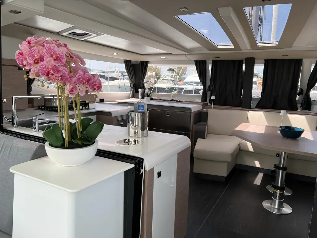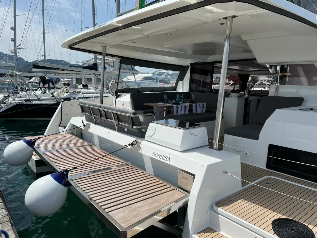The yacht Sonrisa is a model Tanna 47 manufactured by Fountaine Pajot in 2023.
