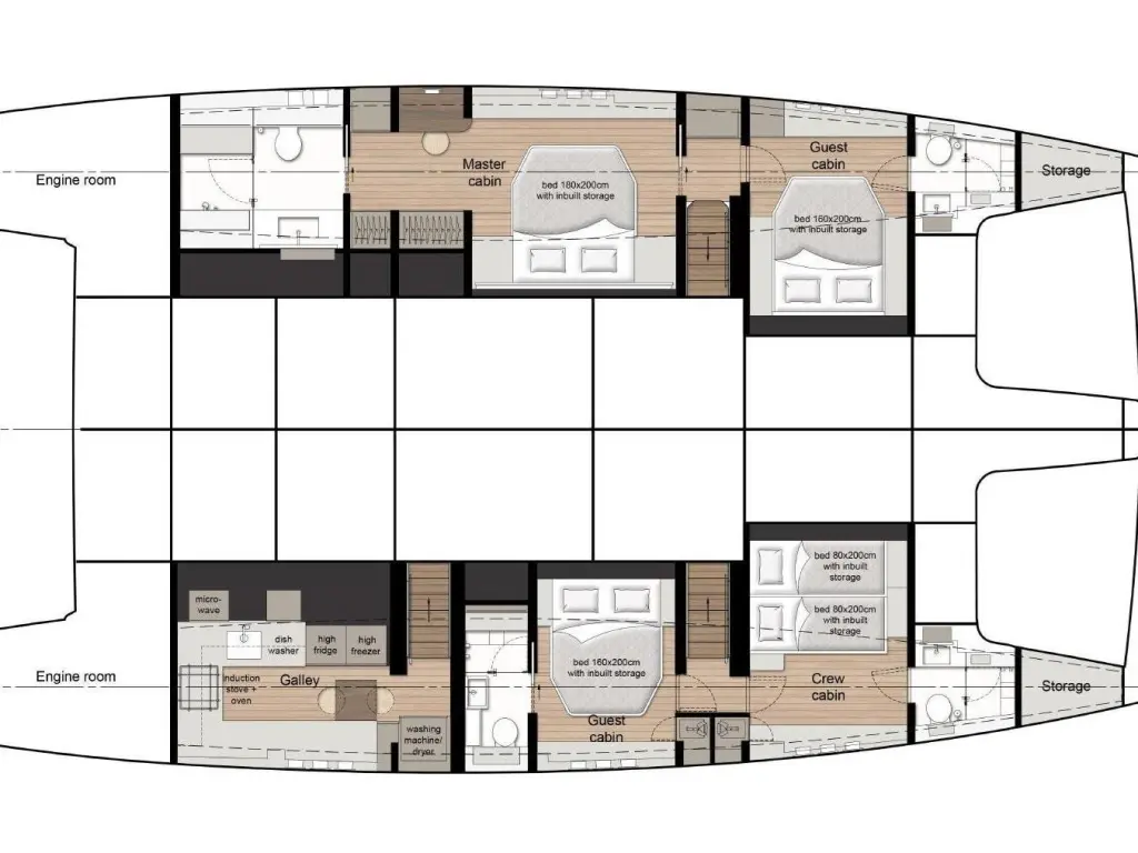 The yacht SPICE OF LIFE is a model Sunreef 60 manufactured by Sunreef Yachts in 2025. It is a perfect choice and is to be rented from Marina Kaštela in the area of Croatia. SPICE OF LIFE has 3 cabins and is suitable for up to 6 guests including the crew. Its length is 18.3 metres and the draught - 0 metres. SPICE OF LIFE has the respective license and is operated professionally by the yacht charter company Ocean Sailing House.