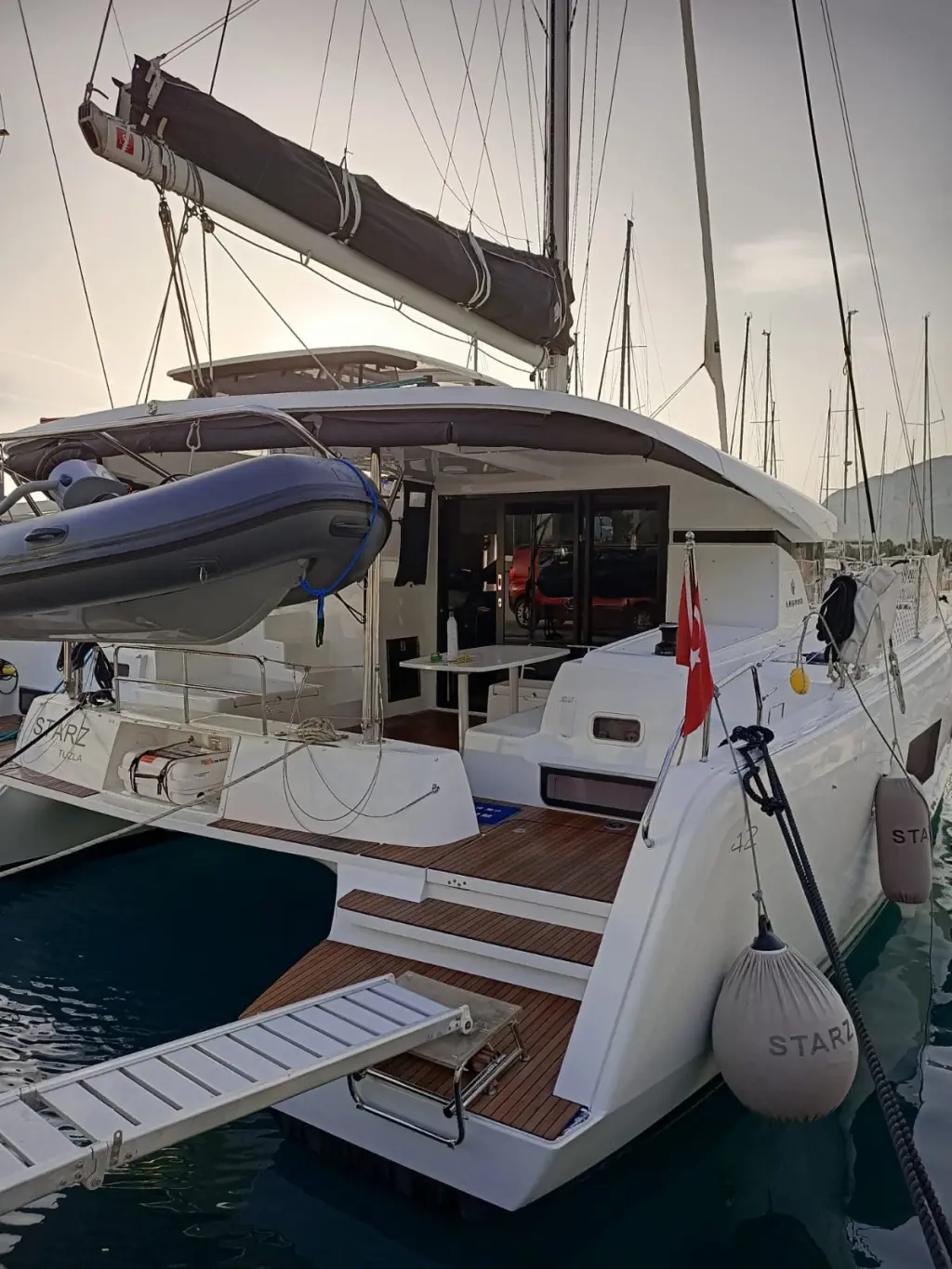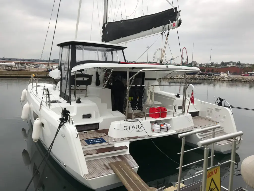 The yacht Starz is a model Lagoon 42 manufactured by Lagoon in 2018. It is a perfect choice and is to be rented from Club Marina in the area of Turkey. Starz has 4 cabins and is suitable for up to 8 guests including the crew. Its length is 13 metres and the draught - 2.35 metres. Starz has the respective license and is operated professionally by the yacht charter company Ada Yacht Sailing.