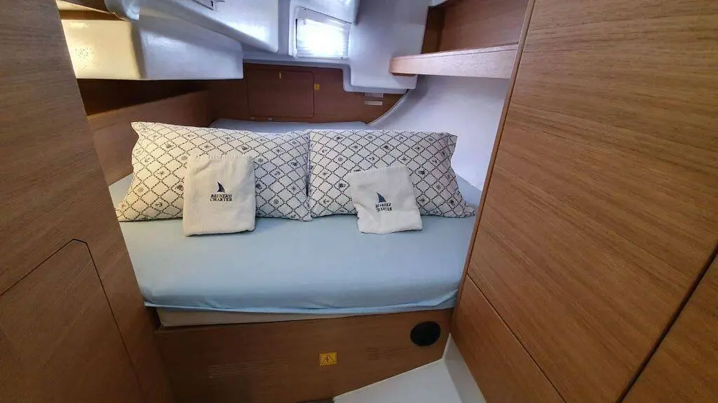 The yacht Stella Mare is a model Elan E4 manufactured by Elan in 2020. It is a perfect choice and is to be rented from Marina Punat in the area of Croatia. Stella Mare has 2 cabins and is suitable for up to 6 guests including the crew. Its length is 10.6 metres and the draught - 2.15 metres. Stella Mare has the respective license and is operated professionally by the yacht charter company NAS Sailing Center.