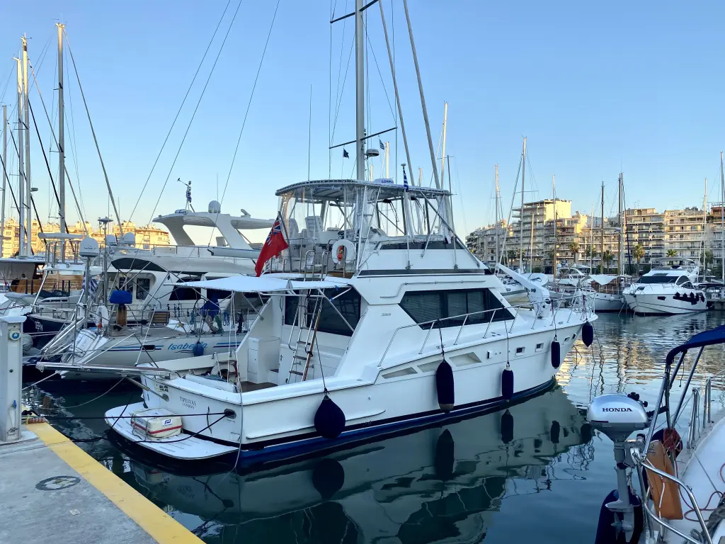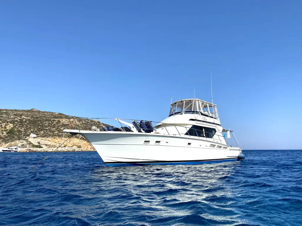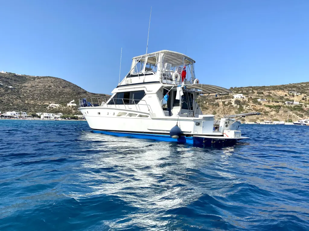 The yacht Tipejyas is a model Hatteras 50 Convertible manufactured by Custom Manufacturer in 1991. It is a perfect choice and is to be rented from Serifos in the area of Greece. Tipejyas has 4 cabins and is suitable for up to 7 guests including the crew. Its length is 15.49 metres and the draught - 1.2 metres. Tipejyas has the respective license and is operated professionally by the yacht charter company Tipejyas Yachting.