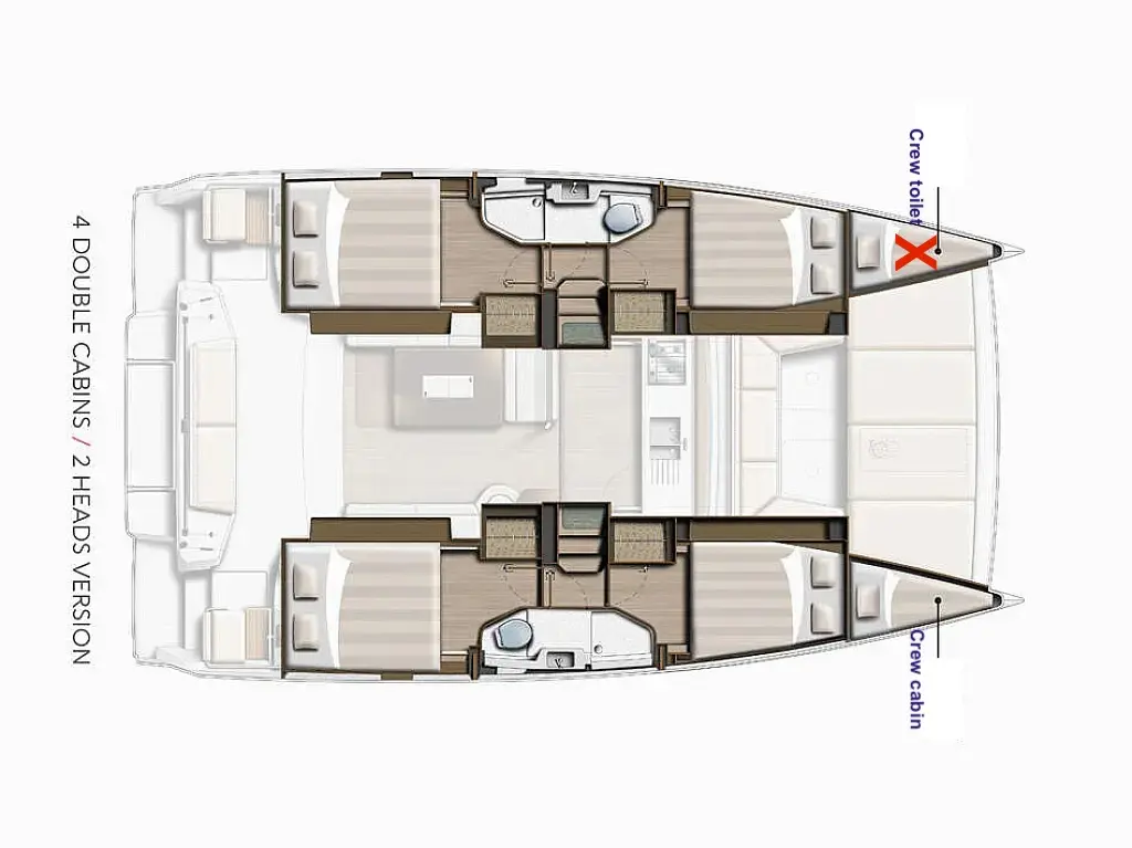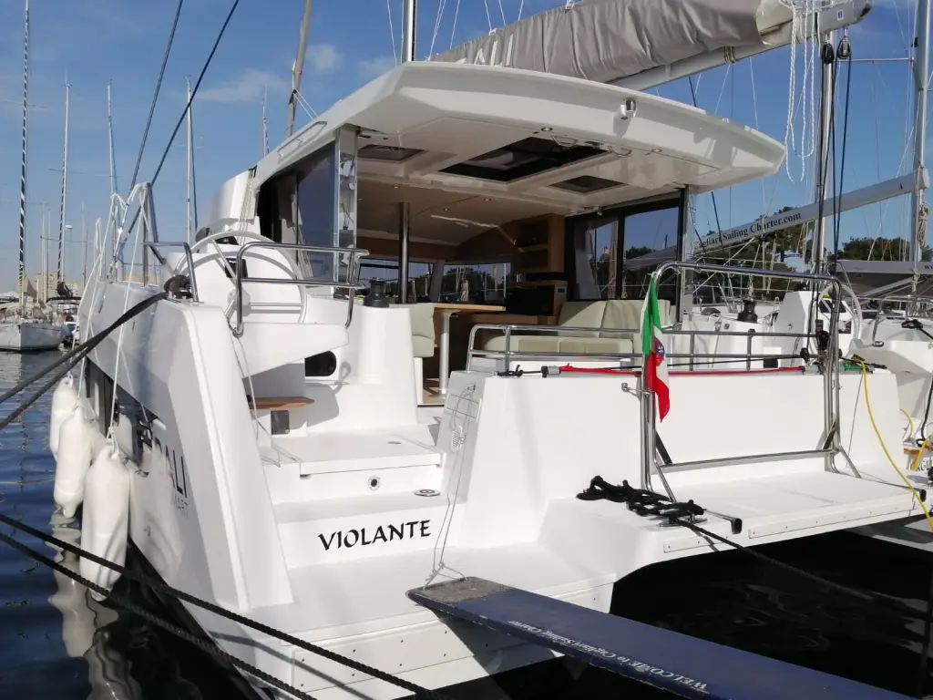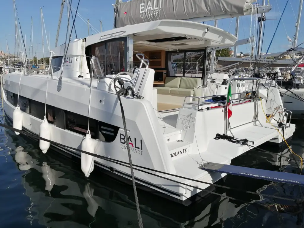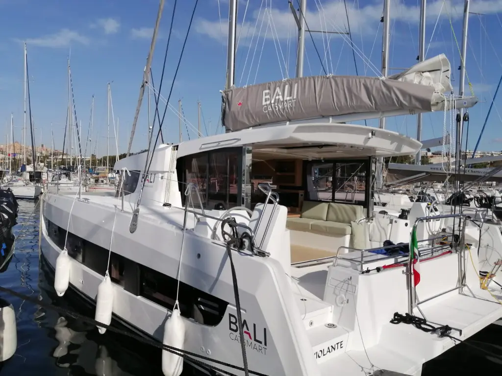 The yacht Violante is a model Bali Catsmart manufactured by Bali Catamarans in 2025. It is a perfect choice and is to be rented from Cagliari in the area of Italy. Violante has 4 cabins and is suitable for up to 8 guests including the crew. Its length is 11.78 metres and the draught - 1.1 metres. Violante has the respective license and is operated professionally by the yacht charter company Cagliari Sailing Charter.