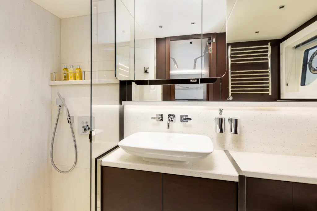 The yacht X2 is a model Sunseeker 65 manufactured by Sunseeker in 2022. It is a perfect choice and is to be rented from West Harbour Split in the area of Croatia. X2 has 4 cabins and is suitable for up to 6 guests including the crew. Its length is 22.5 metres and the draught - 1.6 metres. X2 has the respective license and is operated professionally by the yacht charter company K Rentals.